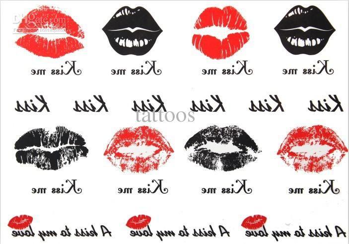 В этом наборе вы получите две татуировки с поцелуями (черную и красную).