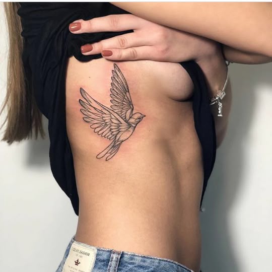 Символ голубя в основном используется для обозначения мира. Татуировка голубя, размещенная на ребре, образует татуировку ребра голубя. Голубь может либо летать, либо просто держаться за определенную ветку. Это одна из красивых татуировок на ребрах.