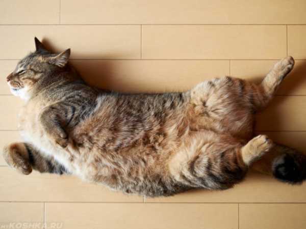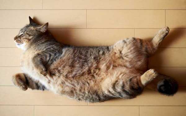 Насытившись, питомец жаждет лишь отдыха. И тут же он сталкивается с проблемой: скрутиться в клубочек или лечь на лапки болезненно и неудобно. В зависимости от степени переедания ему приходится падать на бок или на спину, чтобы ничего не сдавливало живот.