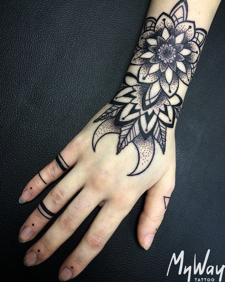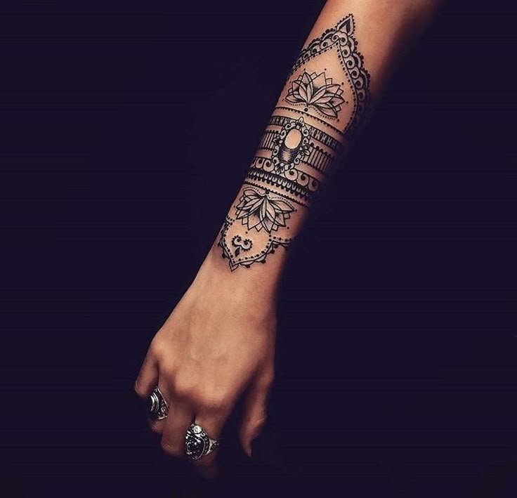 Рука является очень популярной частью тела для нанесения татуировки. На плече прекрасно размещаются изображения средних размеров. Их можно соединить с зоной предплечья. На руке можно отлично использовать объем, придав картинке оригинальности. На зону запястья наносят рисунки в форме браслетов, цветочных орнаментов, миниатюрных картинок.