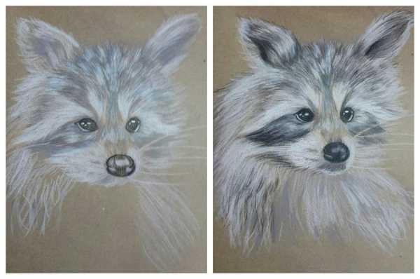 Вот такие нарисованные еноты у нас получились, надеюсь, вам понравилось рисовать этих милых зверей.