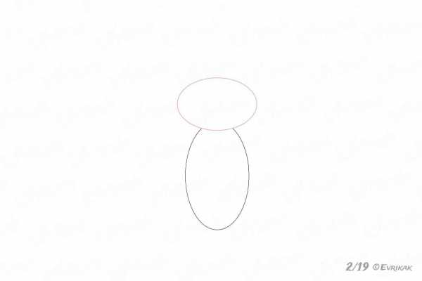 - Сделаем набросок общего силуэта. Чертим овал, располагаем его вертикально.