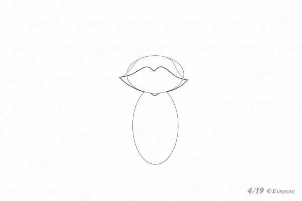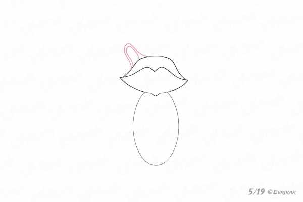 От нижней части в овале проводим две изогнутые линии. Вместе они должны напоминать шапочку.