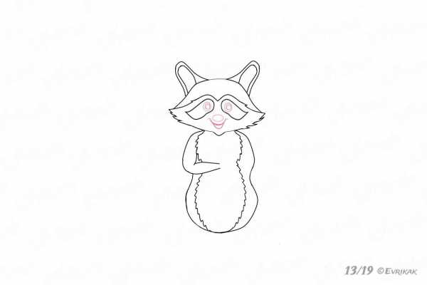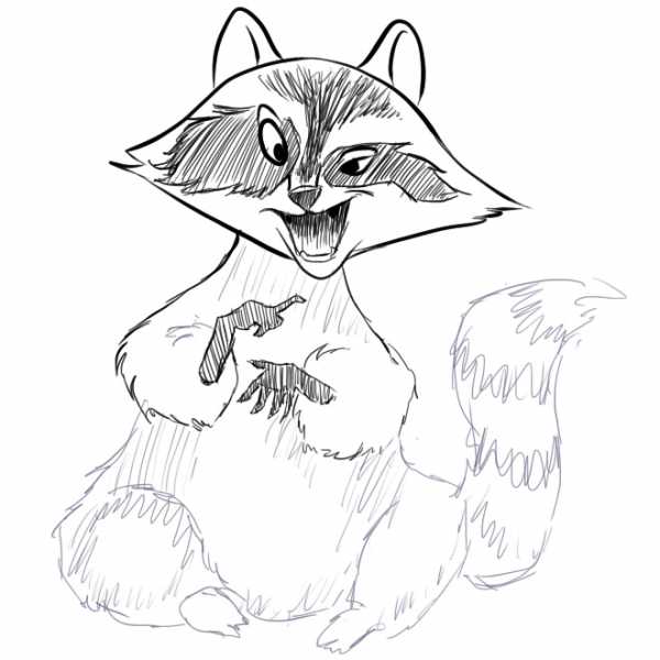 Ну вот, енот нарисован, теперь осталось только мягким карандашом прорисовать все линии и можно будет раскрашивать.