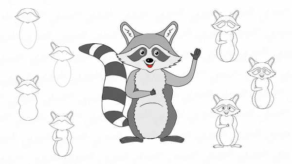 Енота можно узнать издалека по характерной тёмной «маске» вокруг глаз и полосатому хвостику. Они часто становятся персонажами детских мультфильмов, их главные черты характера хитрость и проворность. Давайте узнаем как нарисовать енота карандашом поэтапно.
