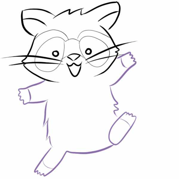 Следующий шаг – рисование тела и лапок енота из мультика.
