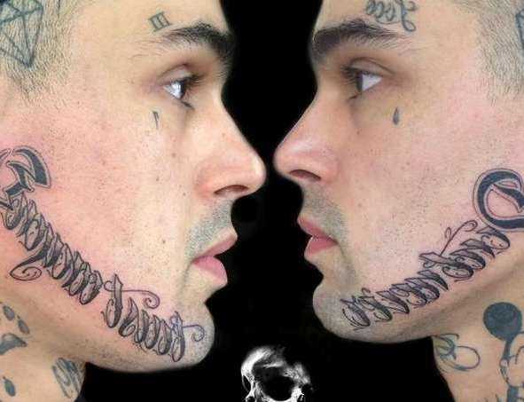 Тату на лице с надписями