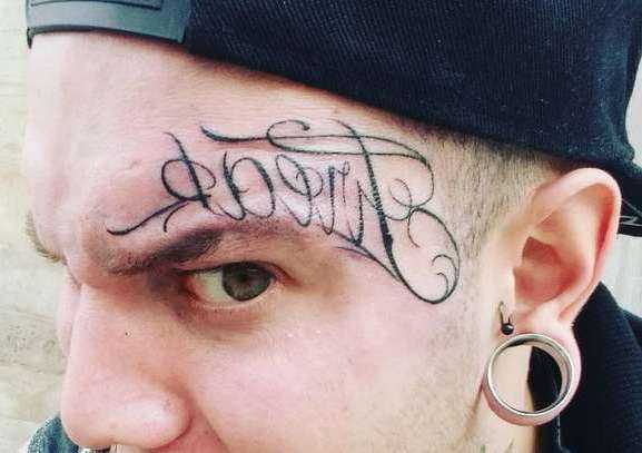 Тату в виде надписи над бровью