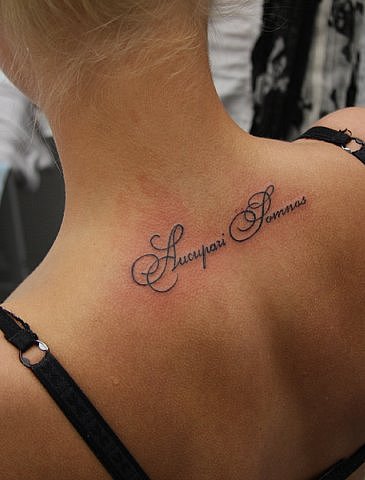 Чаще всего выполняют фразы на латинском, французском и английском языках. К примеру, английские слова будут понятны практически в любом уголке мира. А вот если вы хотите, напротив, скрыть смысл вашей цитаты, остановитесь на латыни. Перед наколкой текста убедитесь, что в нем нет ошибок.