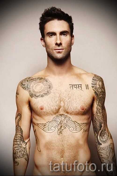 Хотя татуировка под грудью подразумевает наличие груди, то есть это — чисто женская тату. Но по этому поводу можно поспорить. Красивые татуировки также очень часто встречаются в нательных рисунках у мужчин. Замечательные татуировки в виде надписей оригинально смотрятся под грудью на мужском теле. Но такие надписи отличаются от женских брутальностью и даже в какой-то степени агрессивностью в стиле изображения фраз. Хотя небольшая фраза личного характера, расположенная с боку, выглядит скромно и интимно. Очень популярно в мужском тату под грудью изображение летящих птиц, в частности изображение орла. Еще такое изображение может быть, как начало, так и завершение сложной татуировки, которая захватывает большой участок мужского тела.