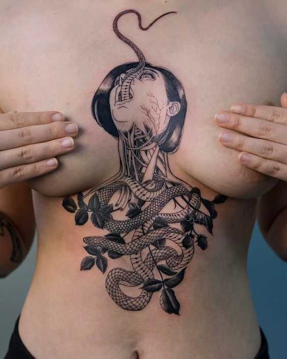 Самые красивые тату под грудью: Женские и мужские варианты на фото