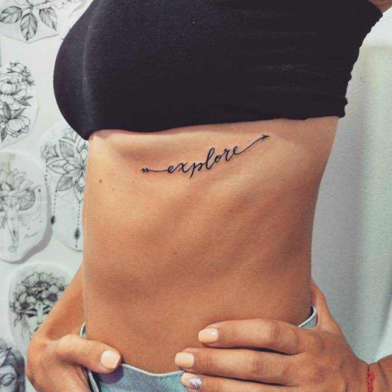 Тату надписи на ребрах женские