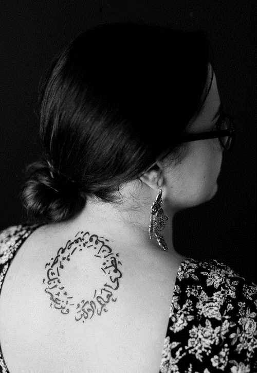 Арабский язык настолько разноплановый, что может быть использован в татуировках по-разному. С надписями можно сочетать картинки, которые будут отражать смысл изображенного в целом. Тату можно дополнять цветами, звездами. Далее приведен пример тату на арабском с переводом. Для девушек это самое то, и выглядит очень женственно. Арабский скрипт очень эластичен, если можно так выразиться, ему можно придать любую форму, к примеру, птицы, животного, цветка, др.