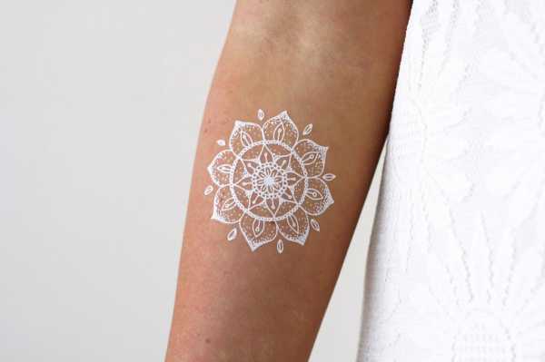 Если вы не любите цветные, яркие, броские татуировки, обратите внимание на белый цвет. Такие работы смотрятся необычно и оригинально. Конечно, они не так заметны, как цветные, зато на загорелой коже вид будет неповторимый. К тому же такие татуировки при желании очень просто скрыть под другими.