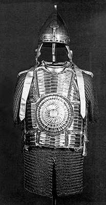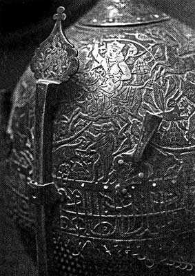 Рис. 5.7. Зерцальный доспех, изготовленный для царя Алексея Михайловича в 1670 году русским мастером Григорием Вяткиным. Покрыт АРАБСКИМИ надписями. Взято из [33], с. 173.