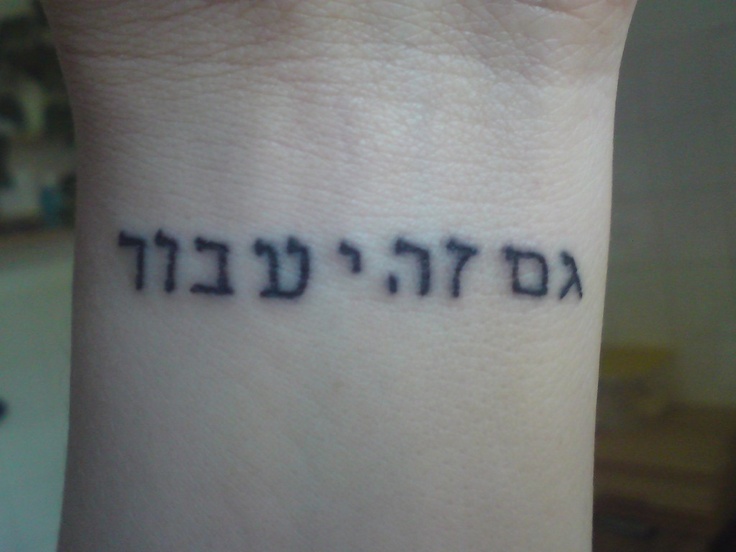 Вытатуировать мотивационное слово на иврите на теле — это долгосрочное решение. Выделите свою татуировку фразы на иврите, используя изящный шрифт или элегантный стиль письма. Все идет не так к лучшему, согласно этому мотивационному сообщению пирсинга.