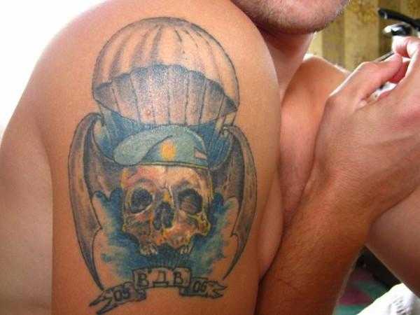 Татуировка ГРУ: парашют, самолеты и надпись “Всегда первый”