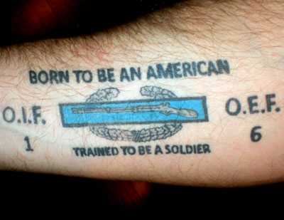 В США, каждый род войск имеет свой набор правил и положений о том, что допускается в тату. Служащие разных видов вооруженных сил делают военные татуировки, чтобы показать гордость за свою страну и погибших солдат.