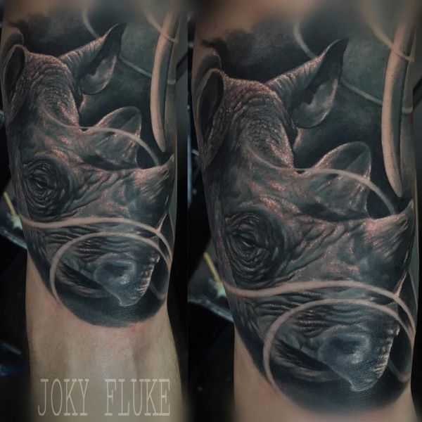 Татуировки с изображением носорога издавна наносились на тела воинов различных племен, для придания им силы этих зверей и их выносливости. Главный символ носорога – его рог, который ассоциируется с устойчивостью, успехом, защищенностью, наличием у его обладателя способности тонко чувствовать и умением использовать свои внутренние ресурсы. Рогу приписывают еще и магическую силу, а в китайской медицине его применяют для повышения потенции у мужчин.