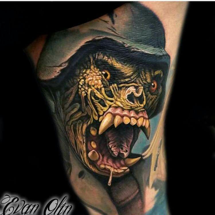 Абсолютно ужасающе реалистичный оборотень от Пола Акера в тату-салоне Séance в Бенсалеме. Популярные фильмы об оборотнях включают «Американский оборотень в Лондоне» 1981 года, «Человек-волк» 1941 года, «Проклятие оборотня» 1961 года и «Человек-волк» 2010 года. Лондон от Хавьера Родригеса Бессмертная художественная студия. Призрачный оборотень из «Американского оборотня в Лондоне» Джо К. Уорролла в Великобритании.