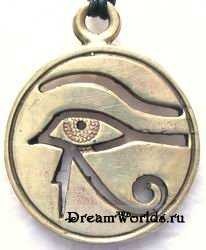 Символизирует предвидение и всезнание, приобретённые благодаря чувственному восприятию мира. Означает вездесущность, постоянное присутствие богов, которые видят всегда и везде – око напоминает об этом. Носимое как амулет, защищает от недоброжелательных взглядов вышестоящих в какой-либо иерархии, от зависти и ревности, которые могли бы усложнить судьбу или препятствовать карьере.