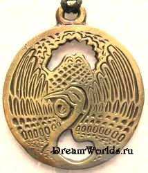 Центр силы духа, из которого черпали силу воины, и эта же сила стерегла их жилища во время походов. Верхняя часть фигуры – орел, зорко следящий сверху и видящий все опасности. Для рискованных предприятий, магических путешествий или переходов в другие миры и состояния сознания. Идущим по лезвию бритвы…