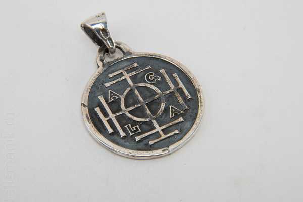 Символ несгибаемых принципов веры и характера. Щит – знак 4 стихий (огонь, вода, воздух, земля) – мощно защищает в любом месте и времени. Божественный меч стоит на страже раз принятых принципов, данного слова, браков и верности. Этот знак защищает, сохраняет чистоту помыслов и непоколебимый дух, готовый отразить всякое зло и соблазны.