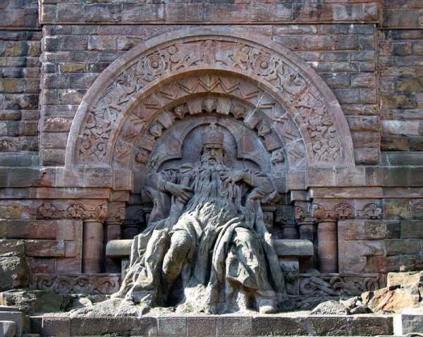 Вот ниже памятник Фридриху Барбароссе в Кифхаузене. Красным кружком выделено изображение точно такого же одноглавого орла на его короне.
