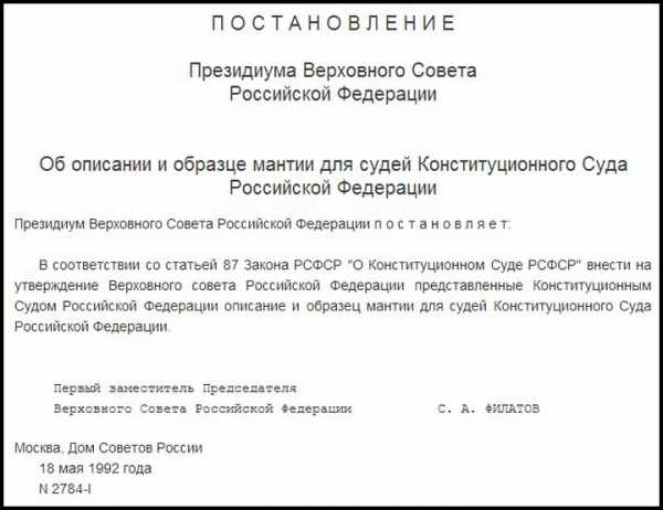 Годом позже и все остальные судьи в Российской Федерации (не только судьи Конституционного Суда) облачились в судейские мантии (по английски «judicial robes», буквальный перевод — «иудейская одежда»), какие были у судей Священной Римской империи.