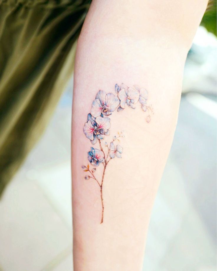 3. Яркая татуировка в виде цветка орхидеи на предплечье