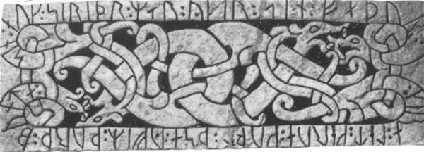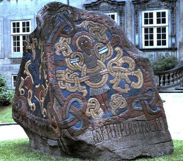 На руническом камне в Дании изображена Великая Мать Богов — «змееногая богиня» скифов в окружении змей и львов.