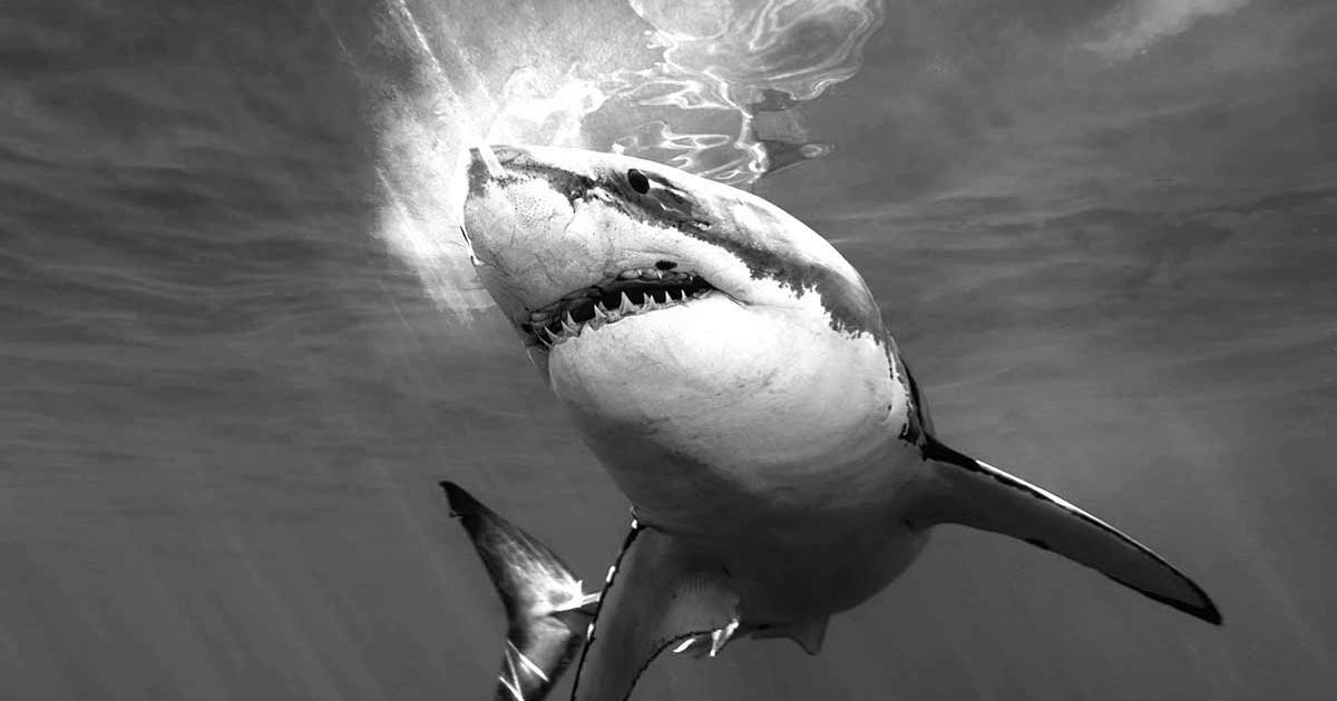 Иван Вишневский акула оскал на спине реализм мужчина черно-белая