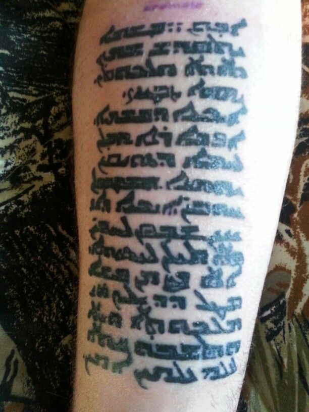 Казалось бы, что вариантов такого рода татуировок нет. Однако это не так. К примеру, часто изображается не сам текст обращения, а буквенное обозначение к строкам священных писаний. Текст также может быть написан как на русском, так и на языке оригинала. Основное требование к такому изображению – отсутствие излишних деталей. Хотя многие строчки из молитв сопровождаются крестиками, полумесяцами и прочими атрибутами того или иного вероисповедания.