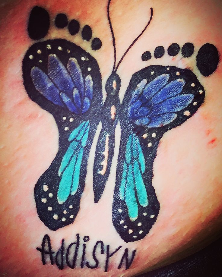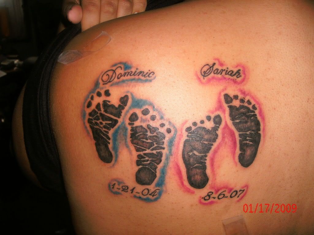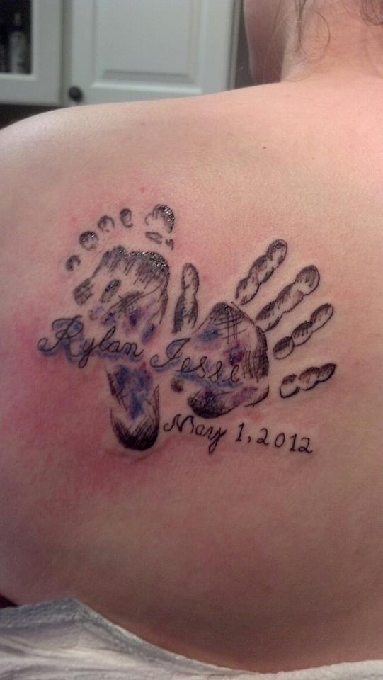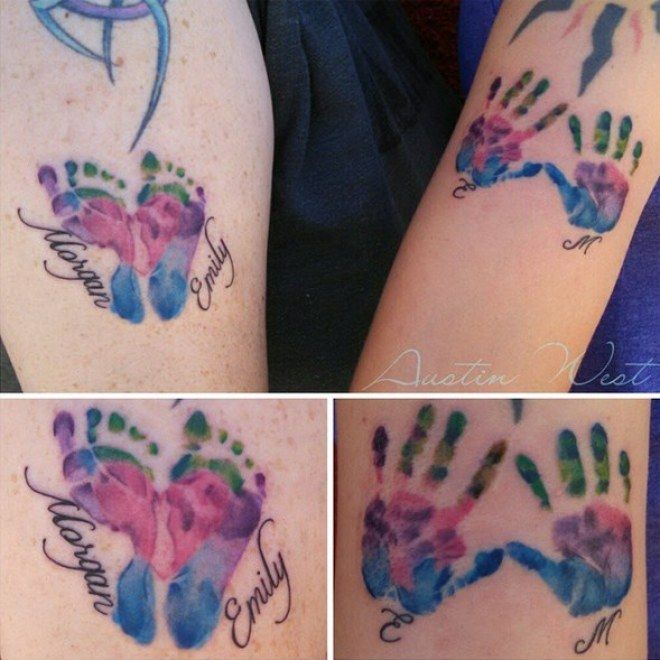 Есть много вариантов татуировок в виде отпечатка руки. Некоторые делают целиком черное тату. Другие добавляют цвета; чтобы показать, что тату посвящена мальчику, ее делают в синих тонах, а если тату посвящена девочке, то в розовых.