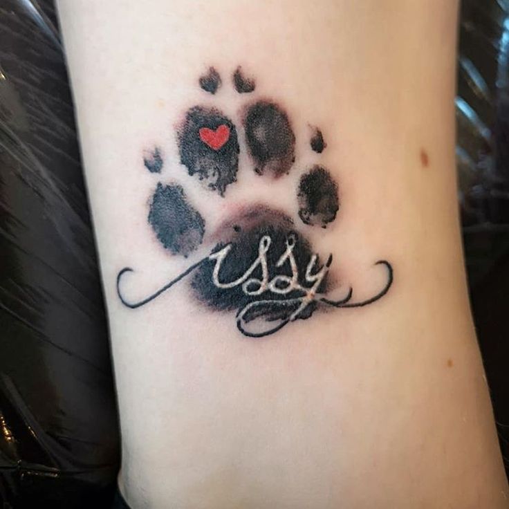 - иногда следы лап делаются в память о погибшем домашнем животном. В этом случае тату может дополняться надписями или датами жизни;
