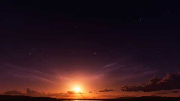 Заходящее солнце и звездное небо