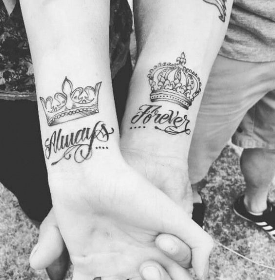 Для королевской семьи корона означает власть, гордость и честь. Нанесение татуировок короля и королевы на руку заставит вас почувствовать себя королевой, напоминая вам обоим о сути верности в ваших отношениях. Это также предполагает, что король будет поддерживать свою королеву как свою сильную половину, вечно защищая ее.