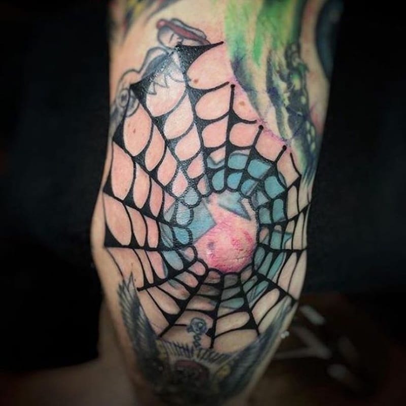 @l_s_davies_tattooerЕсли вы думаете об уникальном месте, поместите эту татуировку паутиной себе на колено. На создание этой татуировки и символа паутины потребуется 4-5 часов.