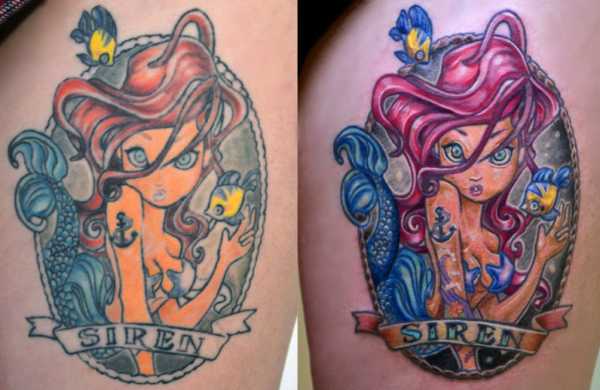 При этом используется тот же эскиз, изображение заново набивается поверх старого. Если мастер советует перекрасить лишь фрагменты тату, то стоит понимать, что исправленные детали будут выделяться своей яркостью и выбиваться из рисунка, лучше выбрать другого татуировщика.