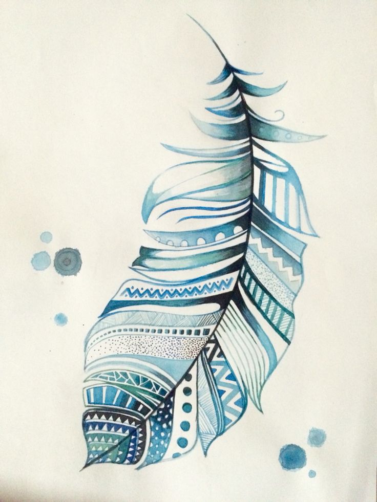 7. Невероятная геометрическая татуировка с перьями для девушки