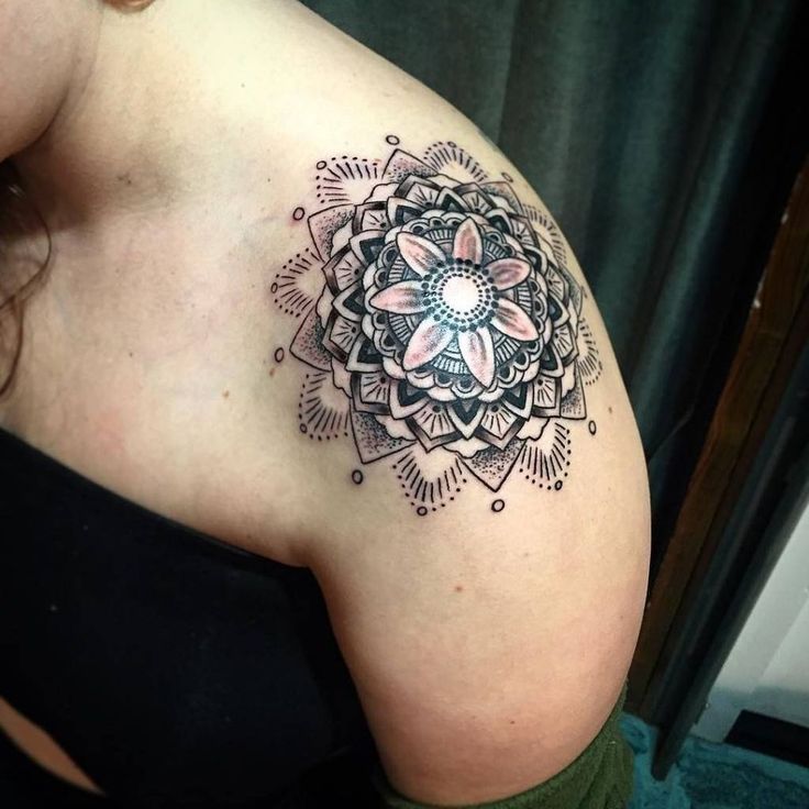 Это красивая работа, в которой используются элементы нескольких разных стилей татуировки для создания интересного дизайна. В центре рисунка два розовых пиона — цветы, часто встречающиеся в традиционных японских татуировках, — нанесенные в стиле, который имеет несколько общих характеристик с японскими татуировками. Фоном для этих красочных цветов служат тонкие линии, используемые для создания кружевных узоров и черно-серых штриховок, которые увеличивают контраст с негативным пространством и помогают цветам выделяться. Хотя это красивая татуировка, она выиграла бы от более смелых линий в некоторых кружевных работах, которые помогли бы ей выглядеть немного более преднамеренной.