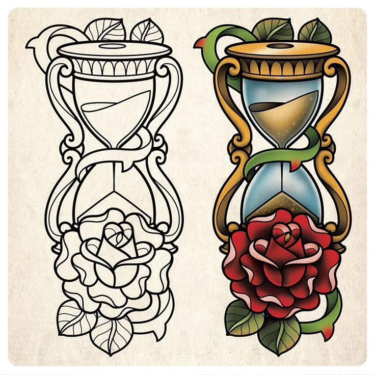 А ниже представлены фото татуировок с изображением песочных часов от разных мастеров для вашего вдохновения.