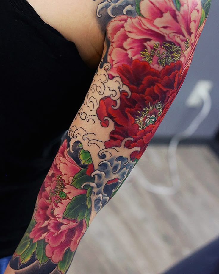Красочные татуировки пионов