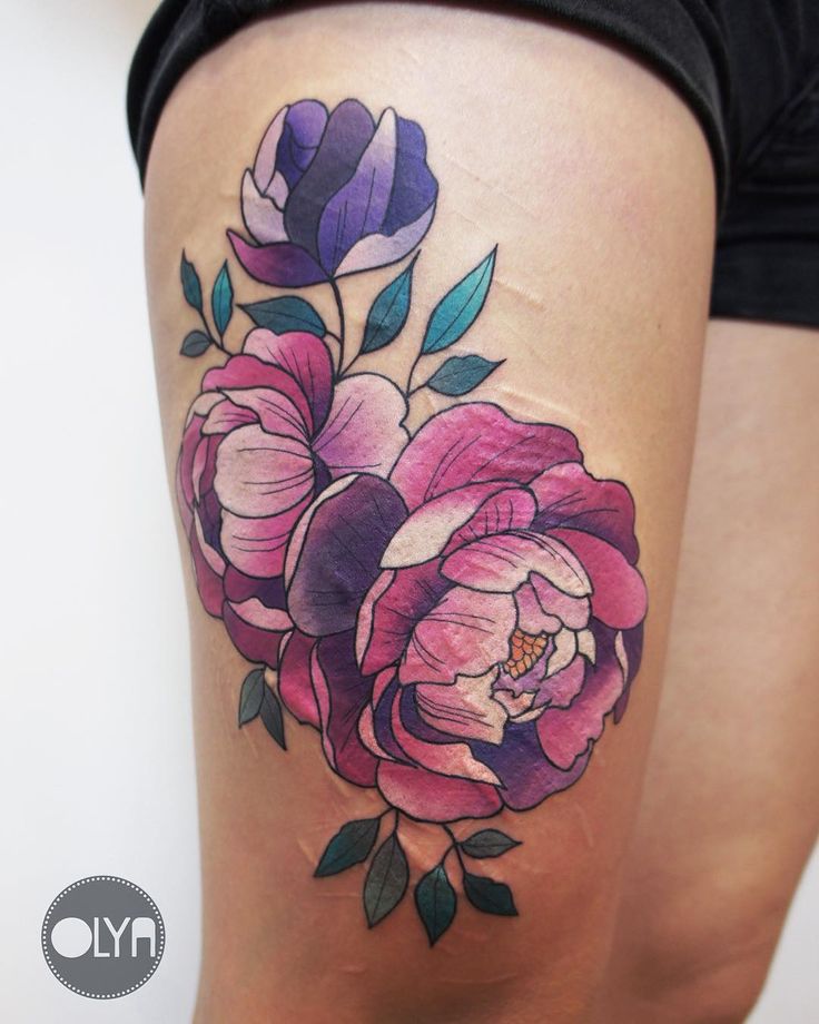 Тату пионы на бедре