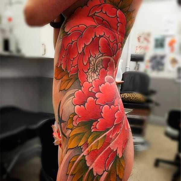 Такая красивая татуировка имеет особенное значение и символизирует достаток, удачу и молодость. Изображать роскошные цветы на мужском теле понравилось еще самураям. Они нередко украшали собственные тела рисунками с хищными животными. Рядом с ними часто можно было увидеть рисунок пионов. Конечно, на первый взгляд такое соседство кажется весьма странным. Но все же в нем есть некий смысл. Так было принято считать, что своей красотой цветок может сдерживать исходящую от хищников агрессию. Таким образом, тату пиона обретает равновесие.