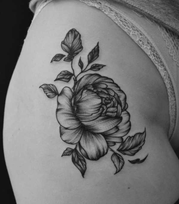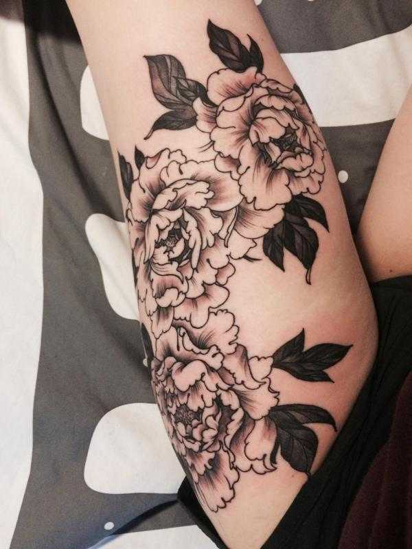 2. Тату пион на бедре, руке и другие популярные места на теле