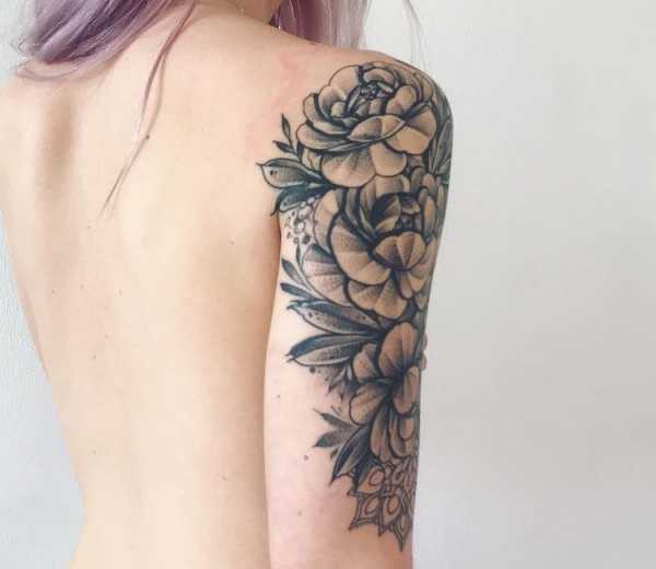 И хотя тату в виде пиона является мужским символом, его нередко можно увидеть у девушек. И здесь в большей степени играет роль не значения, а красоты цветка. Такая татуировка на женском теле будет смотреться точно также красиво, как и на мужском.
