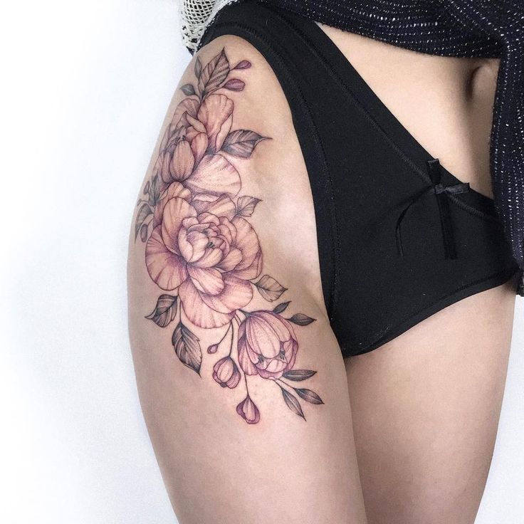 Тату пионов на бедрах — 124 лучших фото татуировок 2022 года