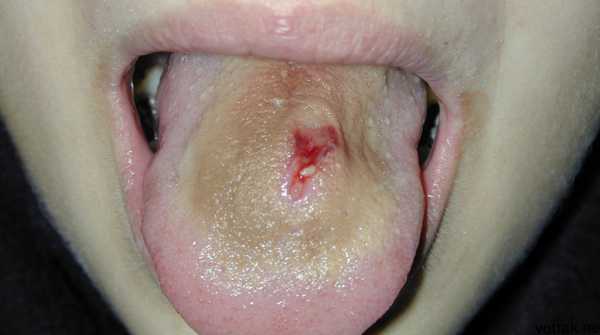 На фото показано новообразование, которое появилось после пирсингаВсем, кто желает сделать пирсинг в языке, следует знать, что довольно массивное украшение может вызвать раздражение на десне, травмировать ее. Также присутствие инородного металлического предмета во рту негативно отразиться на состоянии зубной эмали и может повлечь за собой изменение вкусовых ощущений. Если вдруг язык после процедуры опух и онемел, или появилась острая пронзительная боль, которая только усиливается, а в самом органе при этом начало пульсировать, нужно в срочном порядке обратиться за медицинской помощью.