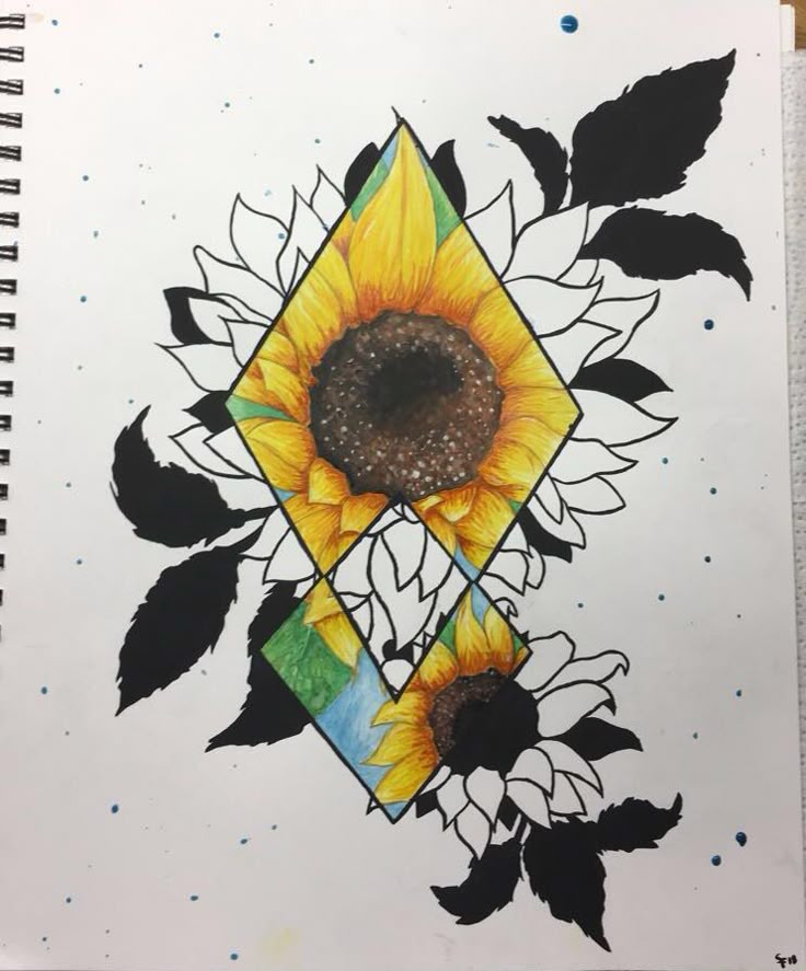 - Дот-ворк: Благодаря множеству возможностей для интересных теней и деталей подсолнухи выглядят фантастически, когда они представлены в точечном и линейном стилях.